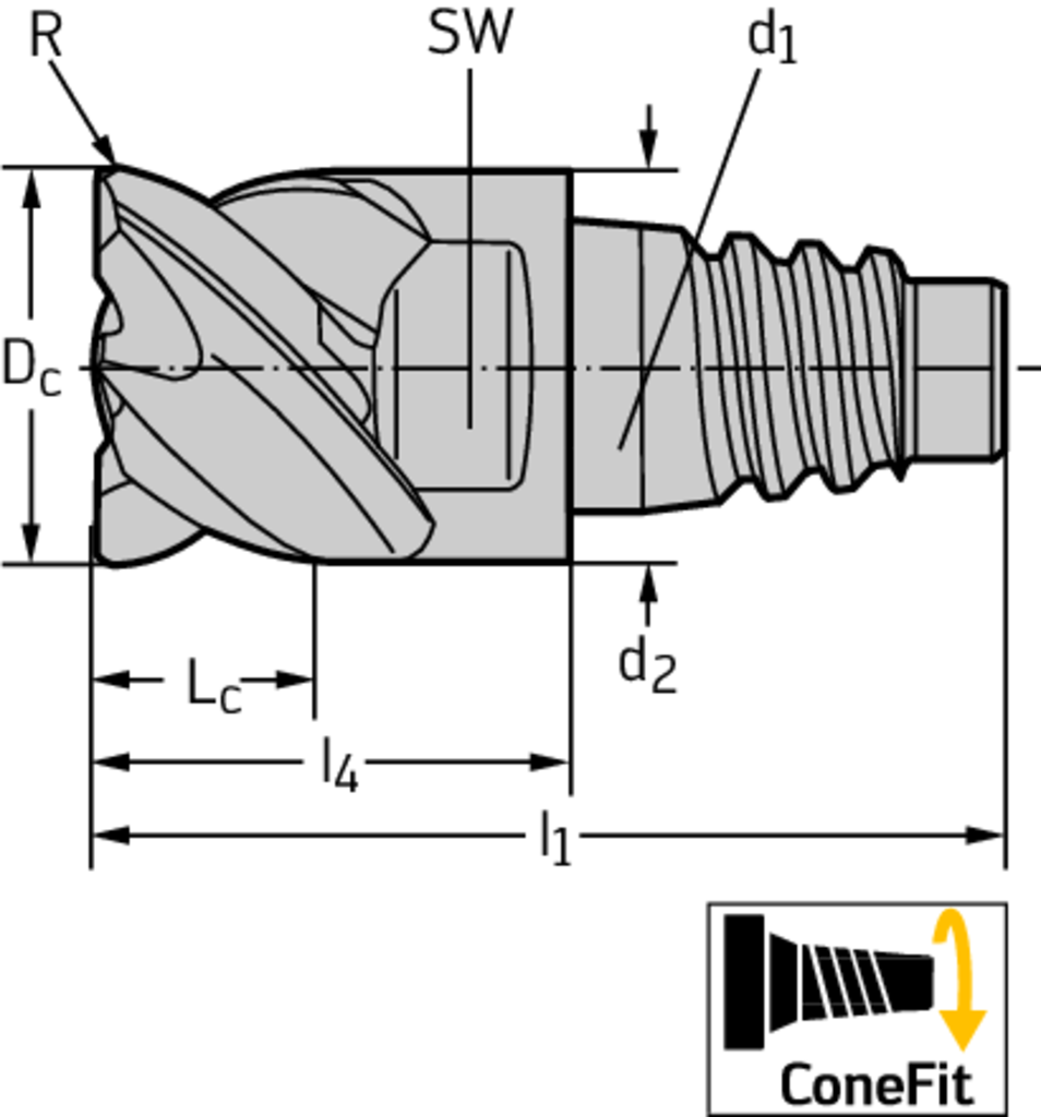 Cutting edge diameter (D c)